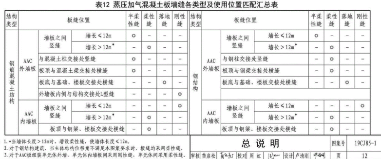 alc輕質(zhì)板的安裝構(gòu)造主要參考兩本圖集,一本是2013年12月25日發(fā)布的《蒸壓加氣混凝土砌塊、板材構(gòu)造》13J104圖集,另一本是2019年9月1日實施的《裝配式建筑蒸壓加氣混凝土板圍護系統(tǒng)》19CJ85-1參考圖集。在這兩本參考圖集中,都沒有提到alc輕質(zhì)板多長需要加構(gòu)造柱。只是在19CJ85-1參考圖集第12頁表12《蒸壓加氣混凝土板墻縫各類型及使用位置匹配匯總表》總規(guī)定,無論是鋼筋混凝土結(jié)構(gòu),還是鋼結(jié)構(gòu),當alc輕質(zhì)板的墻長大于等于12m時,需增設(shè)柔性縫,使的墻體長度小于12m。